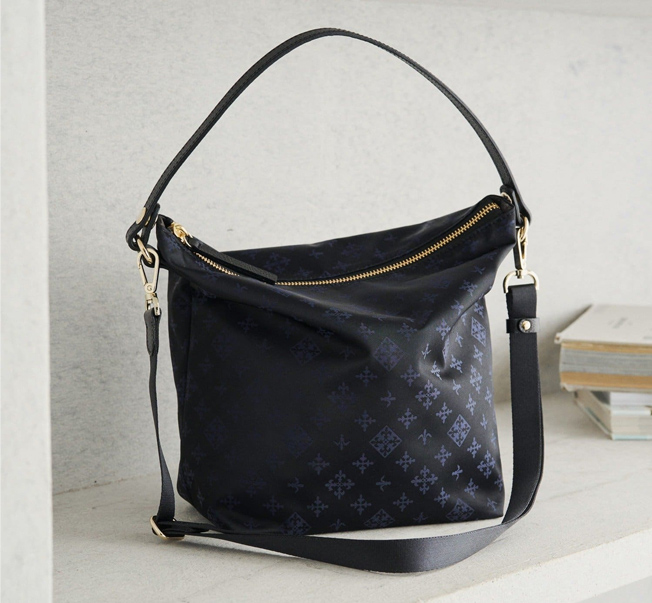 上質なジャガード織のナイロンやスムースレザーは、きれいめにも、キレイめカジュアルにも使えるからコーデを選びません♪